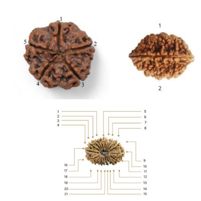 Ogni Rudrākṣa è unico e porta con sé un’energia particolare, determinata dal numero di facce (Mukhi) presenti sulla sua superficie. Le Mukhi possono variare da 1 a 21.